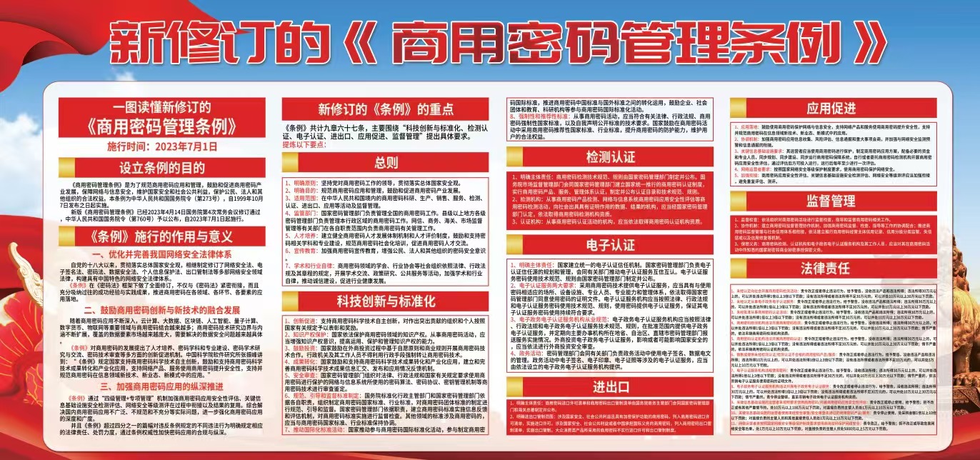 我司积极响应并深入贯彻、执行《中华人民共和国密码法》、《商用密码管理条例》及《商用密码检测机构管理办法》,并于今天顺利获得了《商用密码检测机构》资质。这一突破是对金阳高科在密码测评领域深厚积淀与技术实力的权威认证!