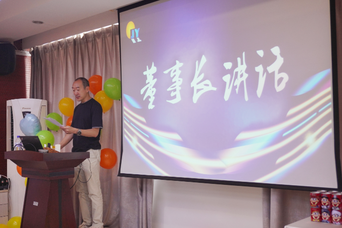 在热烈的掌声中,董事长上台致辞讲话。他深情回顾了24年来公司与员工、客户共同成长的历程,并强调:“金阳的今天,源于每一位同事的坚持与创新;而未来的星辰大海,更需要我们以‘技术为根、客户为本’的信念携手前行。他表示24年不是我们的终点,而是我们新的开篇。